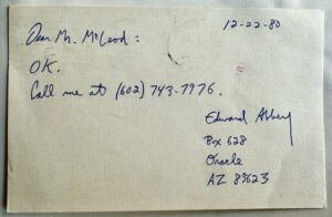 I’m working on a memoir about Indigenous sacred site guardians and the chapter I wrote about Ed Abbey and the birth of Earth First! at Glen Canyon Dam didn’t really fit, so I had “an outtake,” a good story to share, and that orphaned chapter became the first draft of a podcast script (and also the basis for our 2025 Annual Report.) So, I’ve been thinking a lot about Cactus Ed.